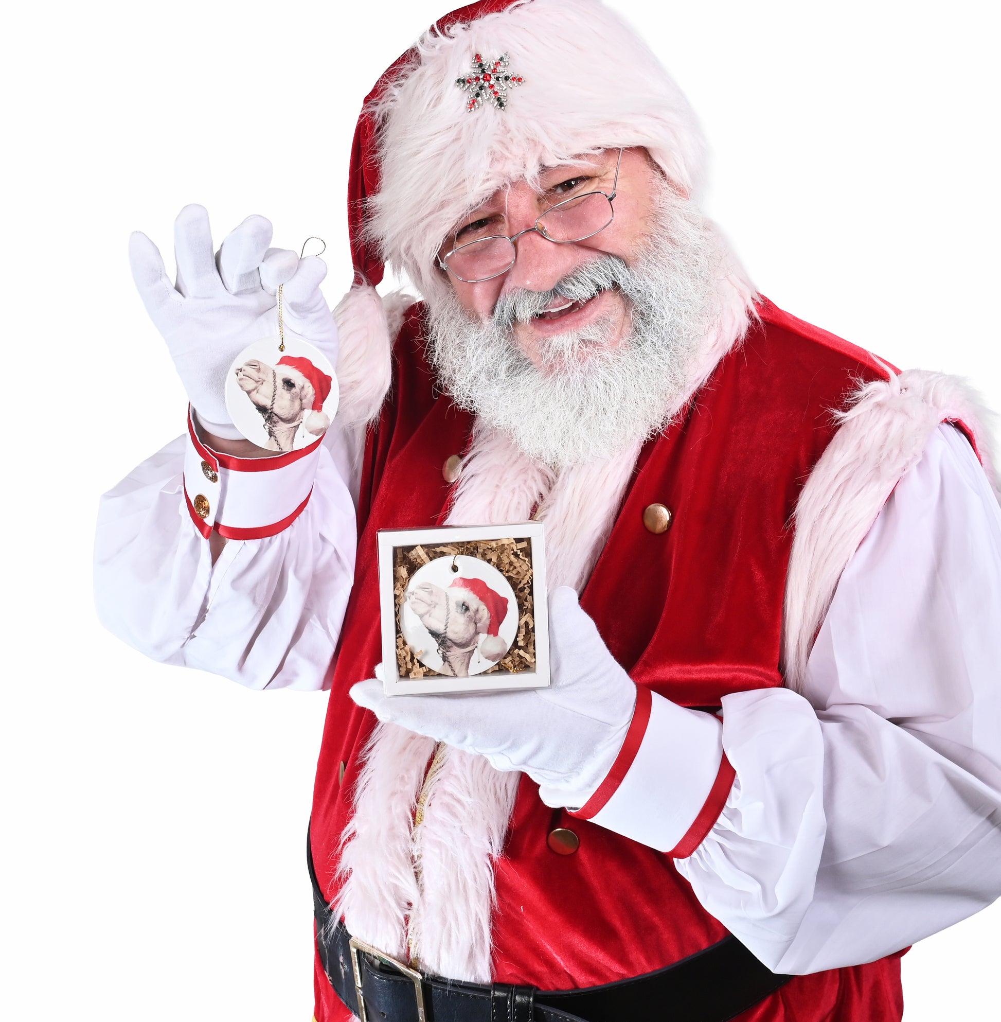 Christmas Tree Dubai Camel Ceramic Ornament, Round White Ceramic, Santa Hat Design, Holiday Tree Decoration